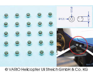 Chrome-plated brass balls are used to screw onto bell cranks or servo arms for connection to the ball-links of pushrods. The chromium plating prevents premature wear of the ball links.